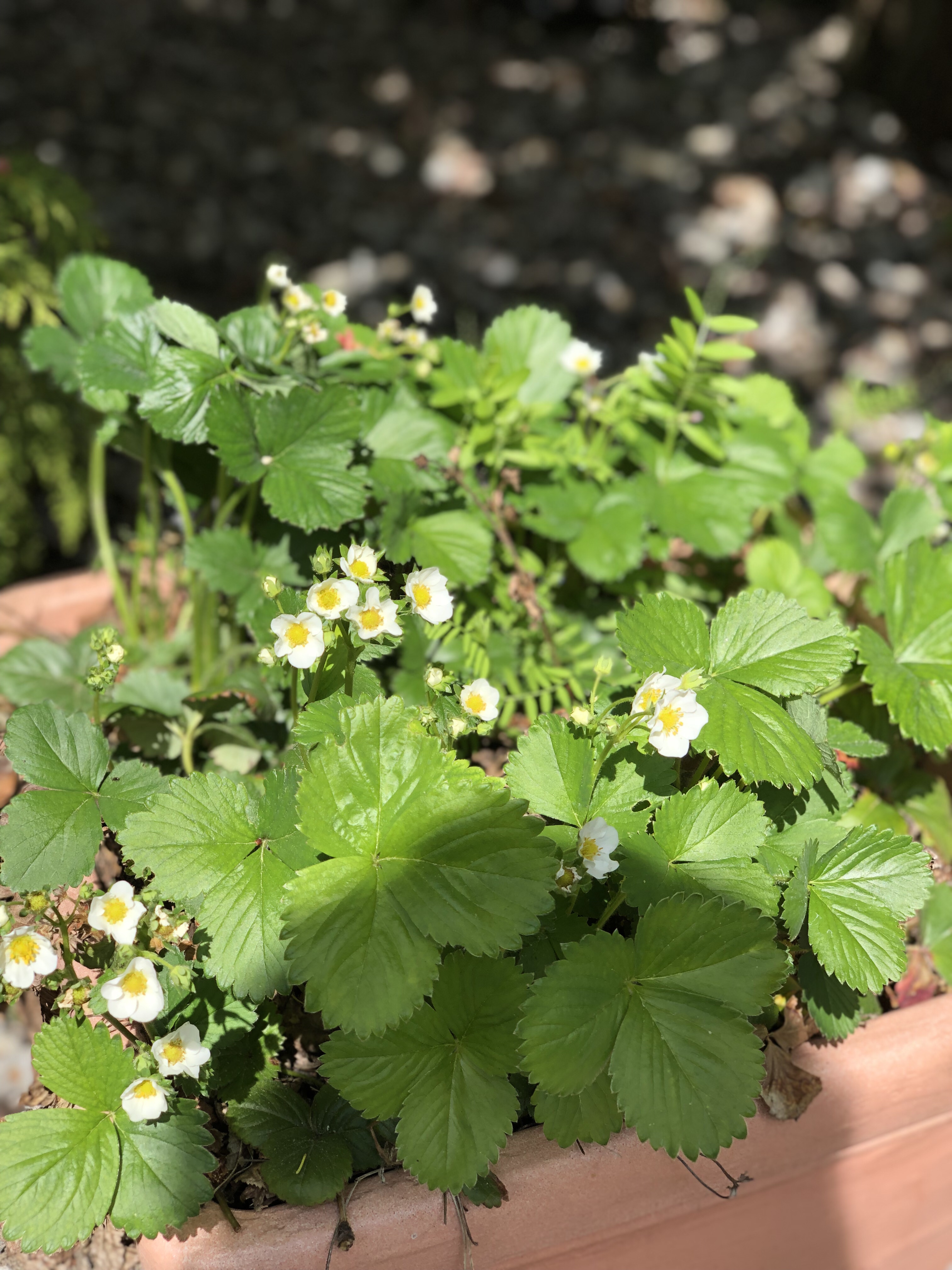 Ein besonderes Phänomen sind meine Erdbeeren im Topf. Die sind schon seit mindestens 10 Jahren in diesen Topf. Und wenn ich ehrlich bin, haben diese noch nie eine besondere Pflege von mir erhalten. Aber sie blühen jedes Jahr auf‘s neue und ich kann wie verrückt Erdbeeren ernten. Vielleicht sollte man die Pflanzen wirklich einfach in Ruhe lassen und dann machen diese ihr Ding.