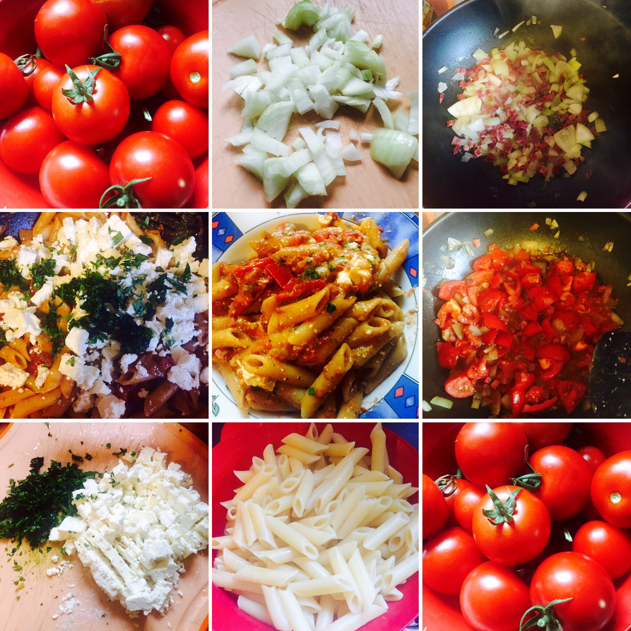 Zuerst habe ich Wasser für die Nudeln aufgesetzt und zum Kochen gebracht. Während dessen habe ich den Kürbis, die Zwiebel und die Maronen in Würfel geschnitten. Dann habe ich die Nudeln ins kochende Wasser für 15 Minuten gegeben. Ich habe die Zwiebel und den Schinken in einer Pfanne angebraten. Dann habe ich den Kürbis und die Maronen dazu gegeben und auch für ca. 5 Minuten angebraten. Nun habe ich alles mit Gemüsebrühe aufgegossen. Alles muss für ca. 15 Minuten bei mittlerer Hitze köcheln bis der Kürbis weich ist. Damit alles schön cremig wird habe ich den weichen Kürbis leicht gequetscht und die Sahne zur Sauce gegeben. Jetzt muss die Sauce mit Tomatenmark, Pfeffer, Chili und Paprika je nach Geschmack gewürzt werden. Zum guten Schluss noch die weichen Nudeln unter die Sauce heben.