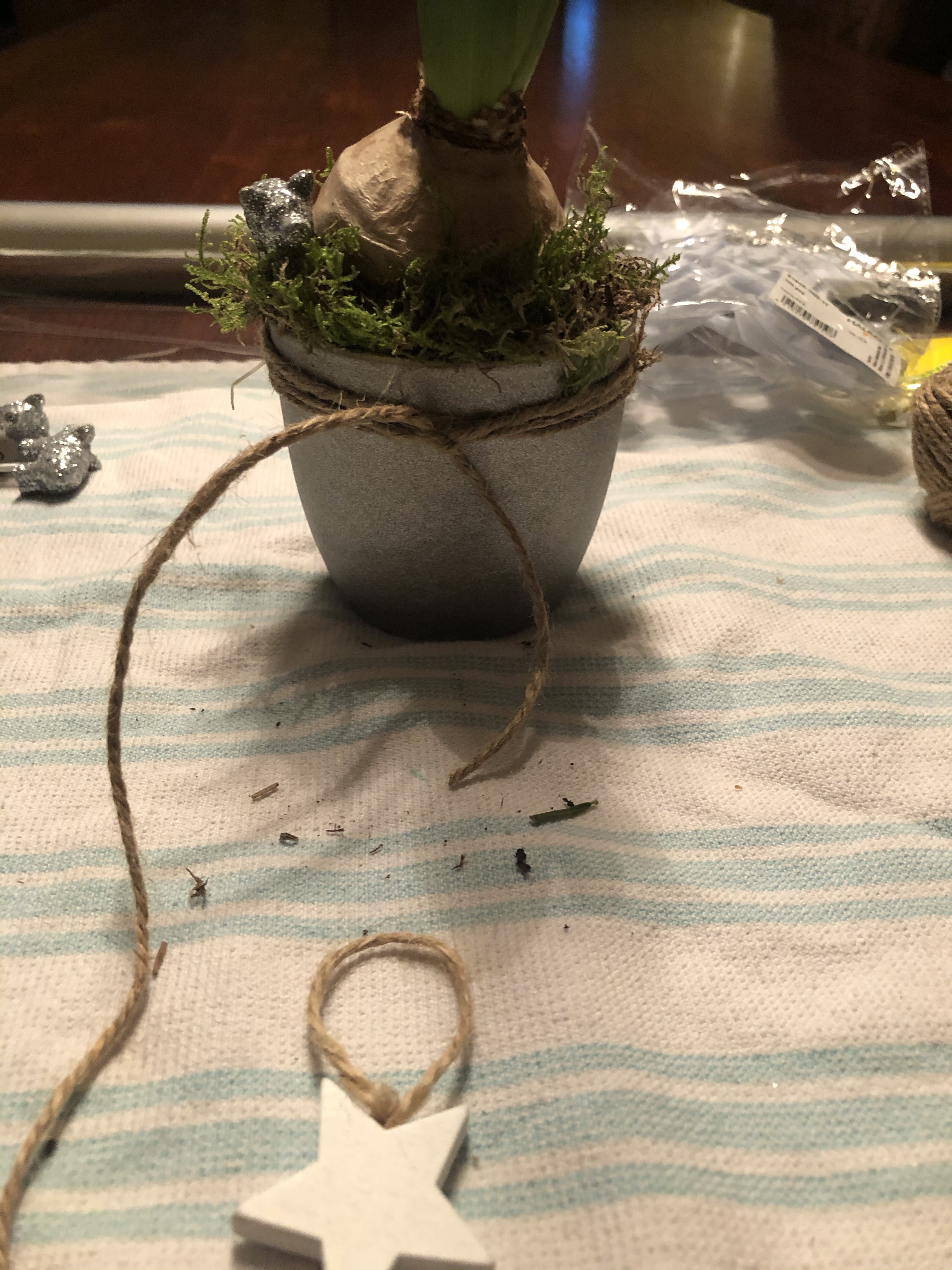 Nun habe ich einfach ein bisschen Juteschnur um das Schwein gebunden und das Schild und den Stern damit befestigt. Fertig ist der Glücksbringer für 2025!
